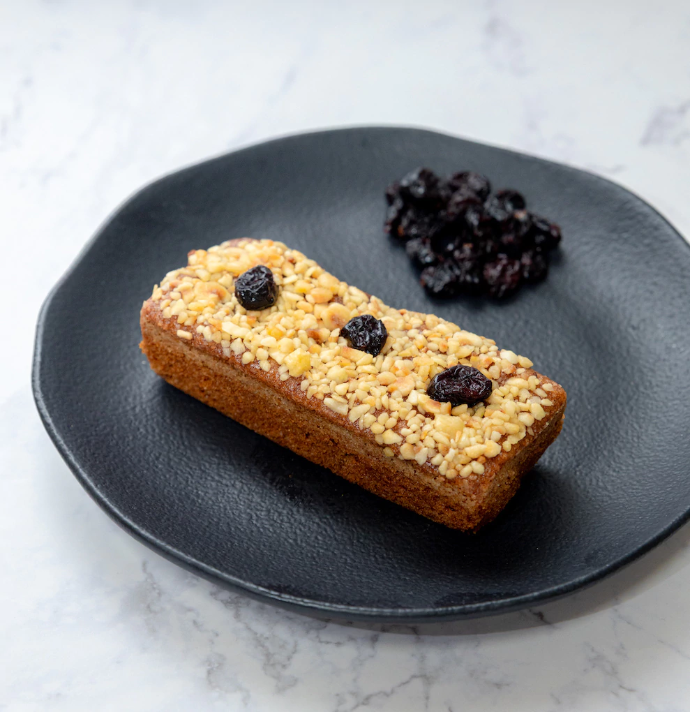 Feito com farinha de avelã, azeite, cranberry e especiarias como canela e noz-moscada. Finalizado com cobertura de avelãs caramelizadas. Uma opção sem glúten que une textura e sabor marcante em uma porção especial.